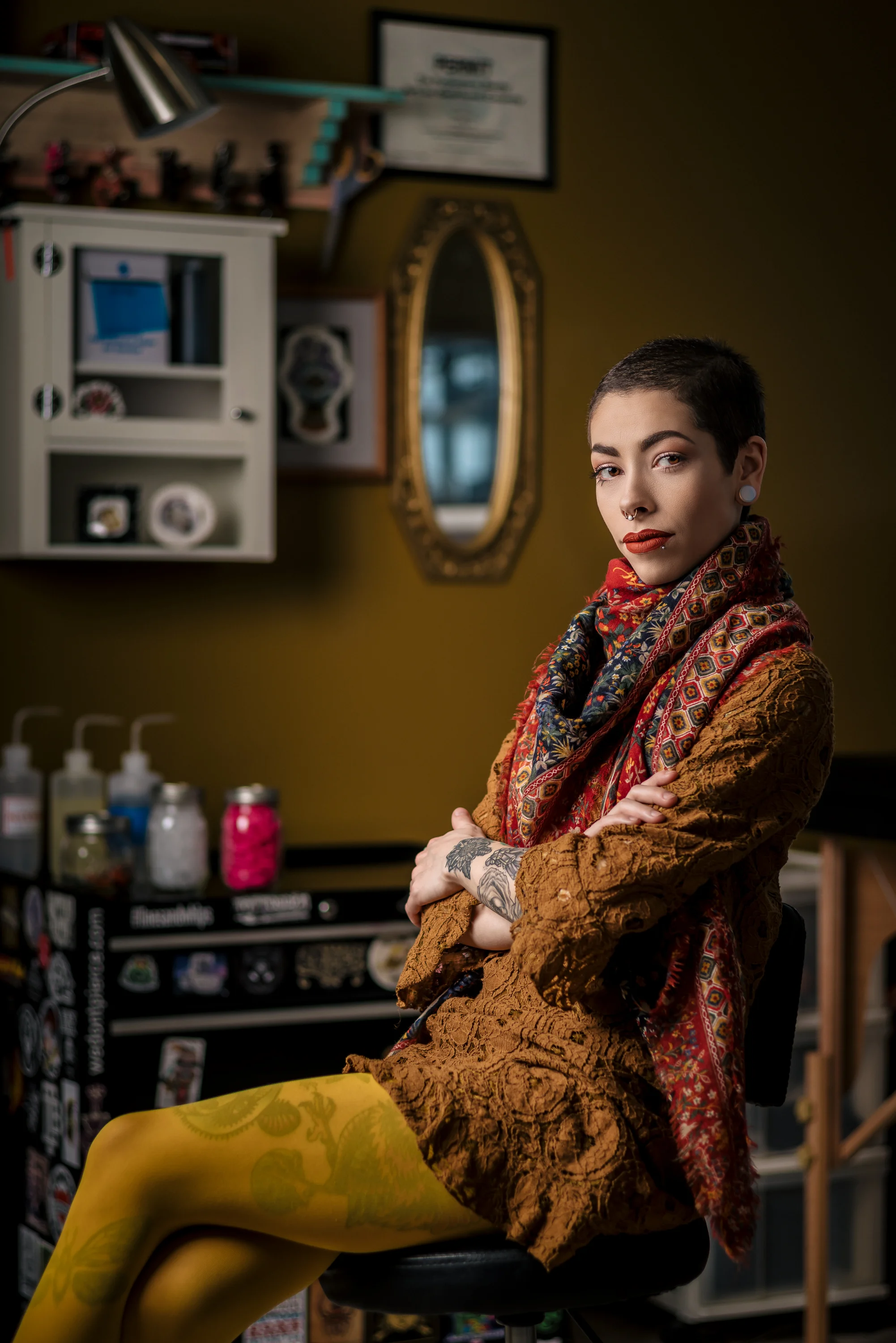 Artist portrait of tattoo artist Elyria in Detroit, Michigan